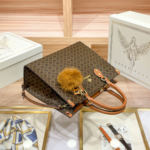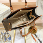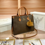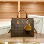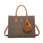 شنطة كتف حريمي مصممه بشكل انيق من اللون البني مع بعض النقوشات للمظهر الجمالي