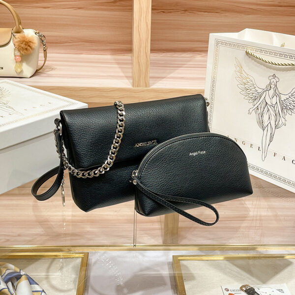 شنطة كتف نسائية من الجلد من انجيل فيس باللون الابيض والاسود مع شنطة كروس