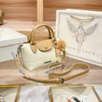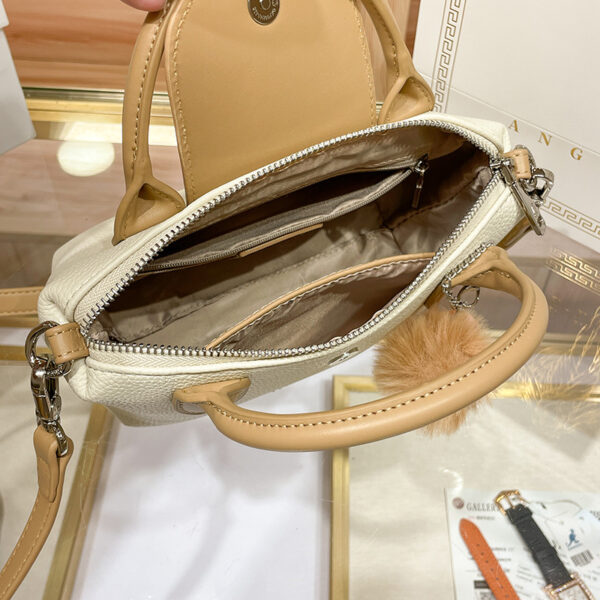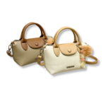 شنطة كتف ويد نسائية متوسطة الحجم من الجلد ,مصممه بشكل أنيق باللونين البيج ,واللون الرملي